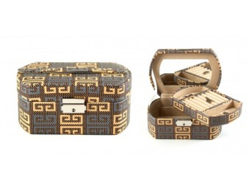 Шкатулка выполнена из высококачественных материалов и снабжена зеркальцем и множеством вместительных отделений. Модель имеет как функциональное, так и декоративное назначение.