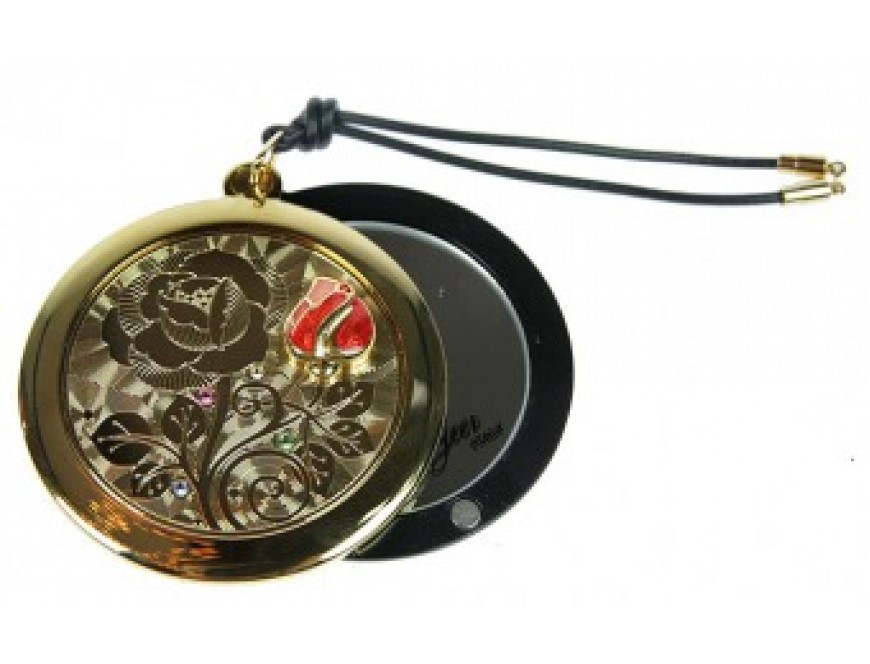 Очаровательное зеркальце со стразами итальянской фирмы La Geer — это изящное двустороннее зеркало в круглом металлическом корпусе золотистого цвета. Корпус украшен оригинальным принтом в виде цветка и сияющими стразами Swarovski. Внутри находятся два зеркальца - обычное и увеличивающее. Такой изысканный подарок придется по душе каждой представительнице прекрасного пола.