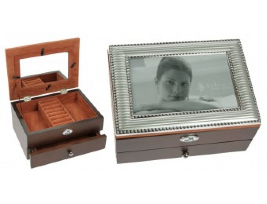 Шкатулка-фоторамка двухъярусная "MORETTO" – больше чем просто ларец для украшений и драгоценных мелочей. Это интерьерная вещь, способная превратить любой заурядный вид будуара в изысканное место одним лишь своим присутствием. В наружной отделке использованы четыре решения:
