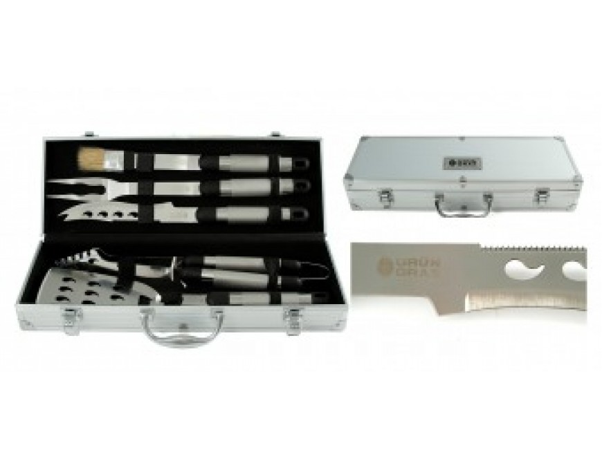 Взгляните на эту оптимальную модель Набора для барбекю: все предметы упакованы в удобный и практичный кейс, который сделан из алюминия, который, как мы знаем, отличается высокой стойкостью от коррозии металлов. Тончайшая пленка, которая возникает на его поверхности, служит надежной защитой от разрушения. И, кроме того, он лёгок. Можете быть уверены, что этот кейс будет служить Вам верой и правдой долгое время. Все металлические детали изготовлены из нержавеющей стали очень высокого качества, они не боятся воздействия высоких температур, не покрываются темными пятнами в процессе эксплуатации, стойки на излом, надолго сохраняют отличную заточку и соответствуют всем санитарно-гигиеническим нормам. Пластиковые детали сделаны из безопасного, износоустойчивого пищевого пластика.